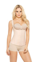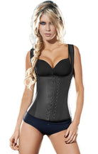 Natural latex thin strap vest, 3 Hook and eye closure; internal cotton cover. Sleeveless. Open-bust. High back, posture corrector for back support. Long fit. Controls the entire abdomen, waist, and back.