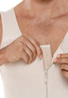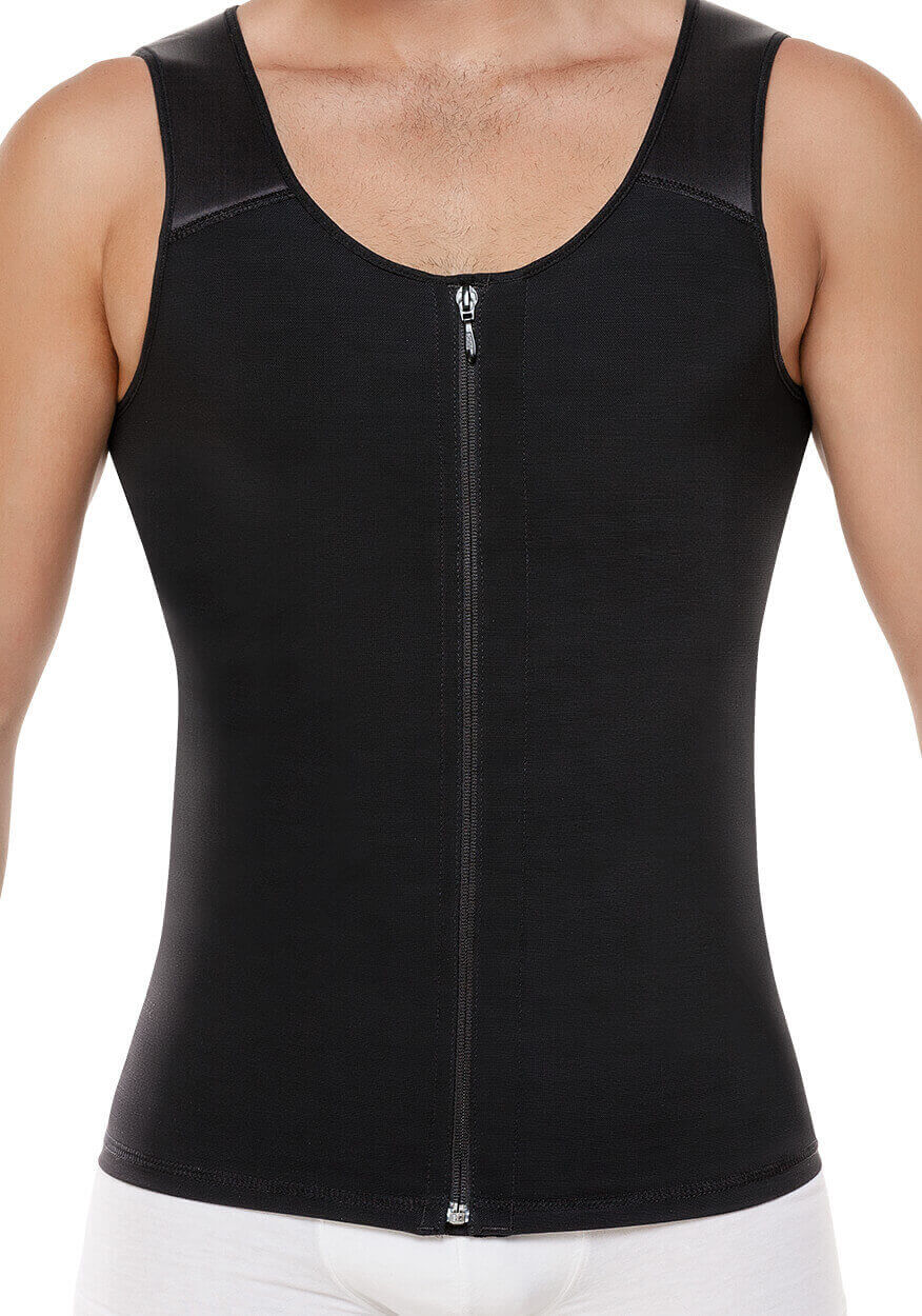 The 7005 CYSM Men's Posture Corrector Thermal Vest is a high-performance garment with an internal hook closure and reinforced zipper to keep it hidden under clothing. Its internal latex layer stimulates thermal activity and strengthens your core, flattening the abdomen and improving posture with a compressive crisscross design. Antibacterial fabric keeps you comfortable and odor-free.